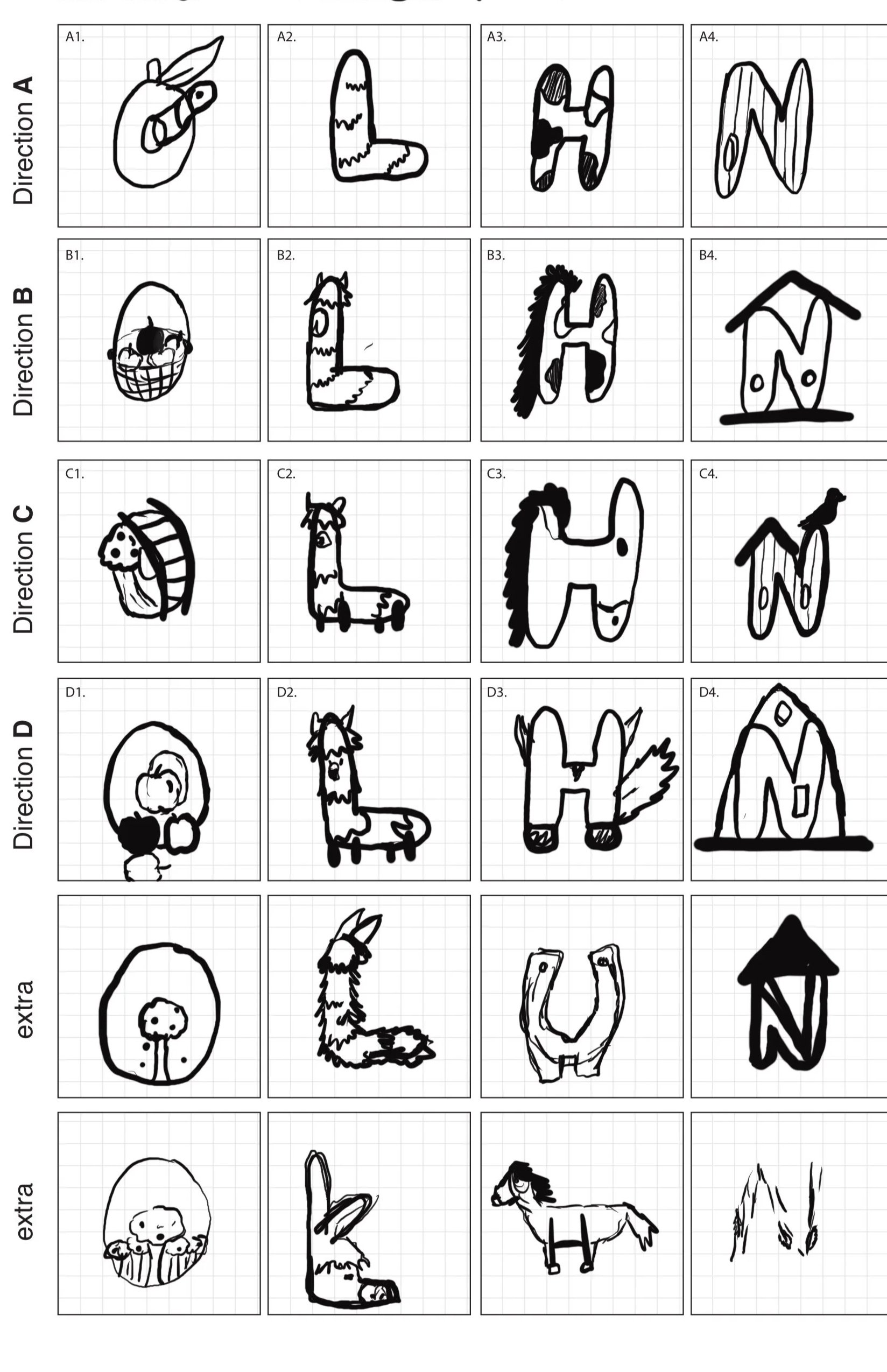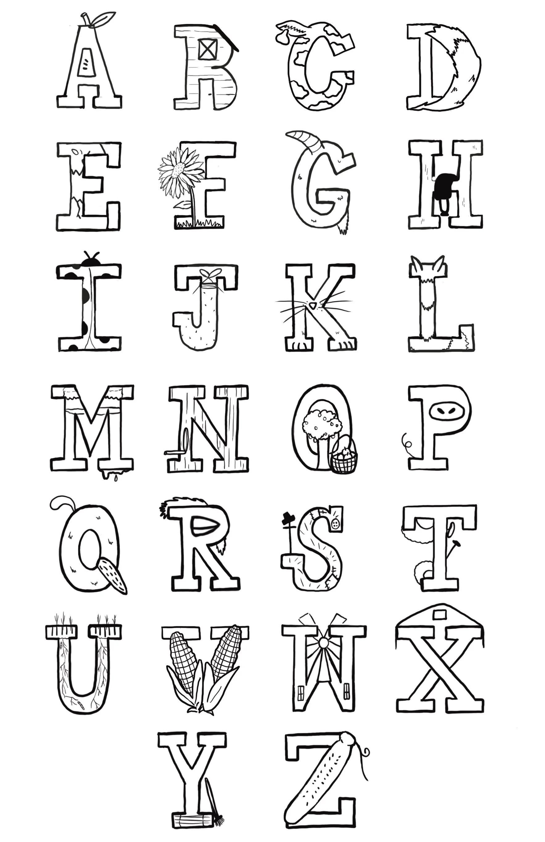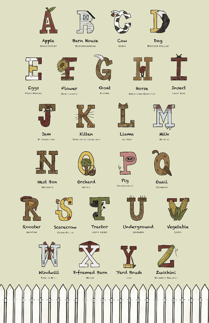 For this project I created a new typeface with a farm theme. Each letter is made with something found around a farm.
